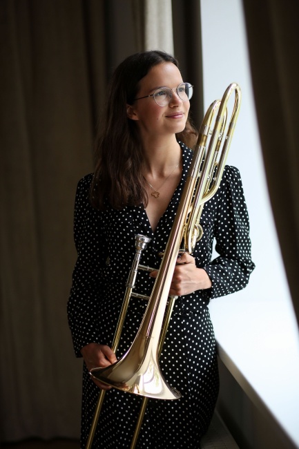 Martyna Mišeikytė (*2001) lernte ab dem Alter von 6 Jahren an der Musik-und Kunstschule in Trakai (Litauen) Klavier und verschiedene Blechblasinstrumente. 2014 wechselte sie an das Musikgymnasium M.K. Čiurlionis in Vilnius, wo die Posaune zu ihrem Hauptinstrument wurde. 2020 kam sie nach Deutschland und setzt seither ihre musikalische Ausbildung an der HfM Karlsruhe bei Prof. Brandt Attema und Sándor Szabó fort.
