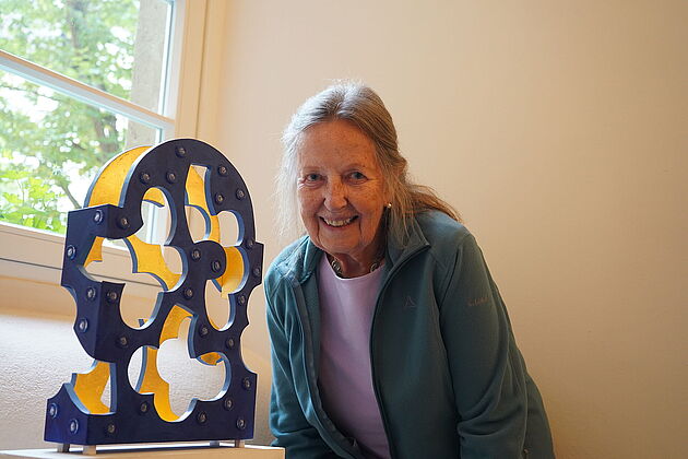Als würde innen ein Licht leuchten: Barbara Jäger präsentiert ihr Holzobjekt „Etui“. Foto: DRS/Guzy