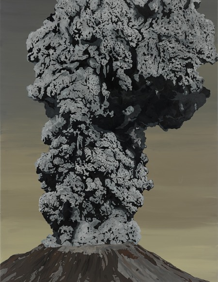 Bild links: Sven Drühl, SDNN (volcano), 2016, Lack auf Leinwand; 200 x 155 cm, Kunsthalle Emden, © VG Bild-Kunst, Bonn 2025