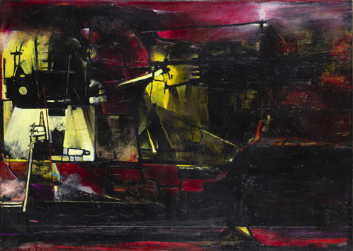 TECHNISCHE ANLAGE (ANGRIFF) / 2014 + 2024 / Öl auf LW / 100 x 140 cm