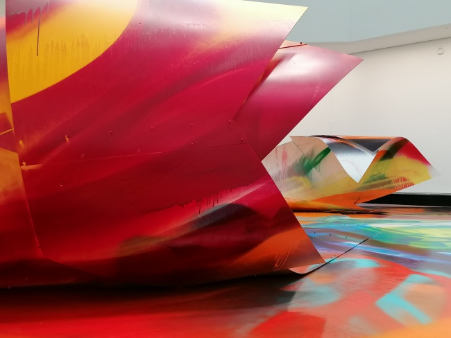 Grosse Kunst – die Interpretation des Wortspiels überlasse ich dem Betrachter. Fakt ist: Katharina Grosse steht für große und großformatige Kunst, für Farben die überwältigen, Formen die faszinieren, für immersive Kunst die Grenzen aufhebt. Betreten der Kunst ausdrücklich erlaubt, das Eintauchen in die atmosphärischen Farbwelten zwischen zauberhaft zart und knallig graffitimäßig gehören bei Grosses Kunst oftmals dazu.