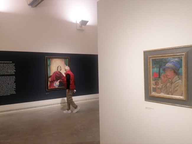 Im Treppenaufgang zum zweiten Stock hängt noch eine Fotografie von Wassily Kandinsky, der seine Lebensgefährtin Gabriele Münter am Strand fotografiert. Das Ende der Ausstellung mit dem fotografischen Œvre der Künstlerin und der Beginn einer Zeitreise durch ihr Werk von 1915 bis die späten 50er Jahre. Die Werke mit dem Ausstellungstitel Aufbruch in Form und Farbe, spannen einen zeitlichen Bogen, und machen externe Einflüsse, aber auch persönliche Erfahrungen und ihre wiederholten Neuanfange für den Betrachter nachvollziehbar. Münter ist mehr als der Blaue Reiter – dass wird bei dieser Ausstellung deutlich und erweitert den Blick auf die herausragende Künstlerin, die von der UNESCO zu ihrem 150. Geburtstag 2027 mit einem Gedenkjahr geehrt wird. Die Werke in der Ausstellung stammen aus der Sammlung Selinka, privaten Sammlungen und der Gabriele Münter und Johannes Eichner Stiftung. Es ist die erste Einzelausstellung seit 20 Jahren in Baden-Württemberg.