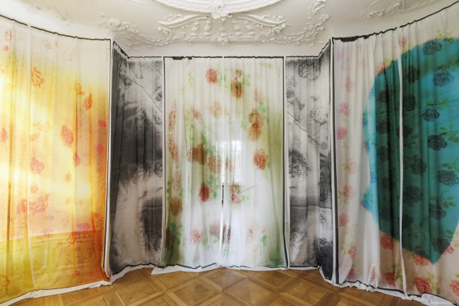 Seit über 15 Jahren prägen wechselnde künstlerische Interventionen das Foyer der Staatlichen Kunsthalle Baden-Baden. Nationale wie internationale Künstler*innen haben den Foyer- und Cafébereich dabei immer wieder neu interpretiert. Mit dem neuen Format der Curtain Commissions lädt die Kunsthalle Künstler*innen ein, Vorhänge zu gestalten, die den Eingangsbereich rahmen. Die erste Curtain Commission realisiert die georgische Künstlerin Ketuta Alexi-Meskhishvili (*1979). Sie entwickelt bedruckte, halbtransparente Vorhänge, die ihre experimentelle Bildsprache in eine räumlich-poetische Wechselbeziehung übersetzen. Vorgefundene und eigene Bilder sowie Ornamente des Alltags werden von ihr vervielfältigt, verfremdet und neu belichtet und zu kunstvollen Arrangements gefügt.