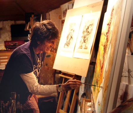 Die Welt kennt Ronnie Wood als Gitarrist der Rolling Stones – doch lange bevor er die Bühnen der Welt betrat, war er Künstler. Nach seinem Kunststudium hielt er die Leidenschaft fürs Malen sein Leben lang aufrecht, parallel zu einer der größten Karrieren der Rockgeschichte.