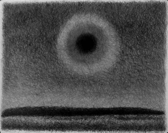 Bernhard Obst: The eruption of the black whole / Landschaftsgespinst IV, 2002