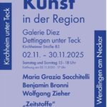 - Kunst in der Region: Galerie Diez, Dettingen unter TeckMaria Grazia Sacchitelli u.a. | 02. – 30.11.2025 | Eröffnung 02.11.2025; 17 Uhr