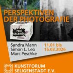 Marc Peschke, Simon L. Leo, Sandra Mann | 11.01. – 15.03.2026 | Kunstforum Seligenstadt | Vernissage: So., 11.01.2026; 17 Uhr: | Perspektiven der Fotografie