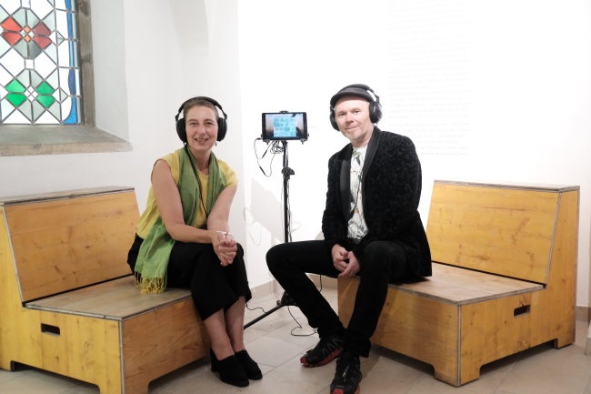 Bild oben: Alexandra Karabelas und der Komponist Frank Wendeberg bei der Eröffnung der Ausstellung:
